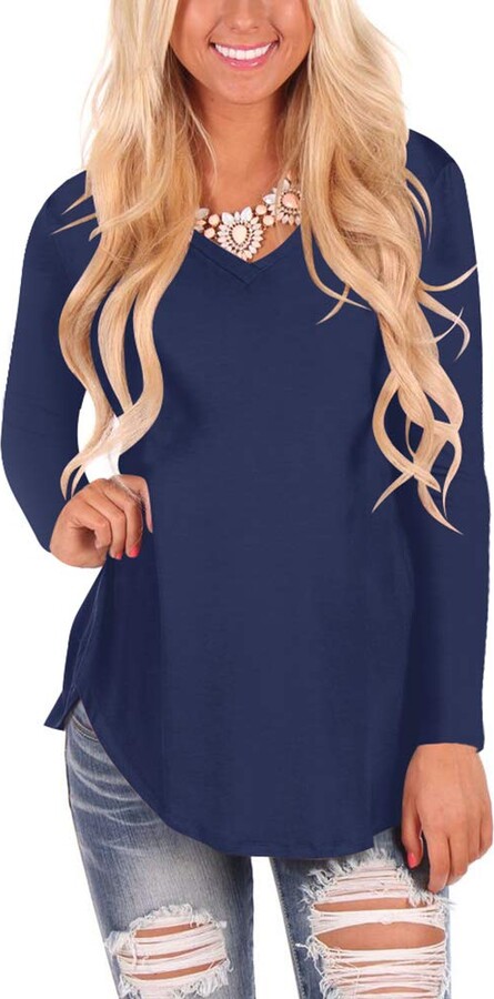 Womens Casual Long Sleeve Tunics Empire Waist Flowy Loose Fit Top Blouse T Shirt Grey Ch18598ze6l Loose Fitting Tops Long Sleeve Tunic Clothes